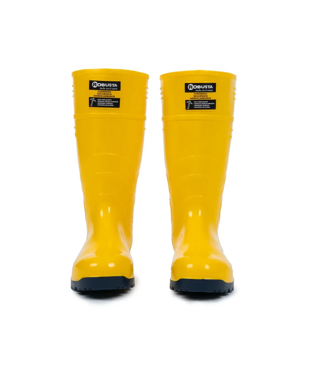 Las botas seguridad hidrocarburos pvc cuentan con una estructura 100% impermeable fabricada en PVC. Este material es adecuado para labores con contacto frecuente con líquidos, hidrocarburos, grasas, solventes y productos químicos.