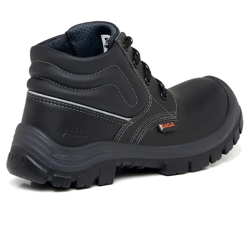 El calzado industrial Saga impermeable integra tecnologías enfocadas en protección activa para actividades industriales. Según la información técnica del producto, puede ofrecer resistencia eléctrica de hasta 18.000 voltios, suela resistente a perforaciones, puntera de seguridad y diseños impermeables para ambientes con exposición a agua o humedad.