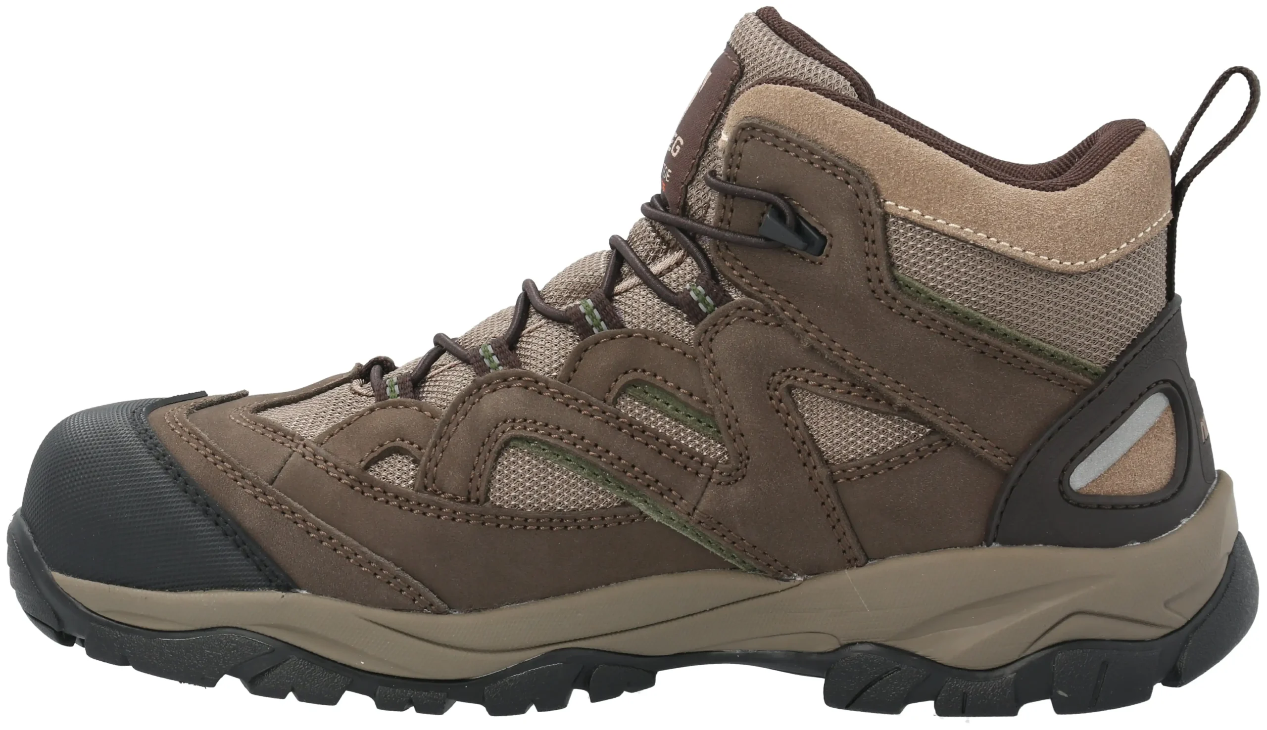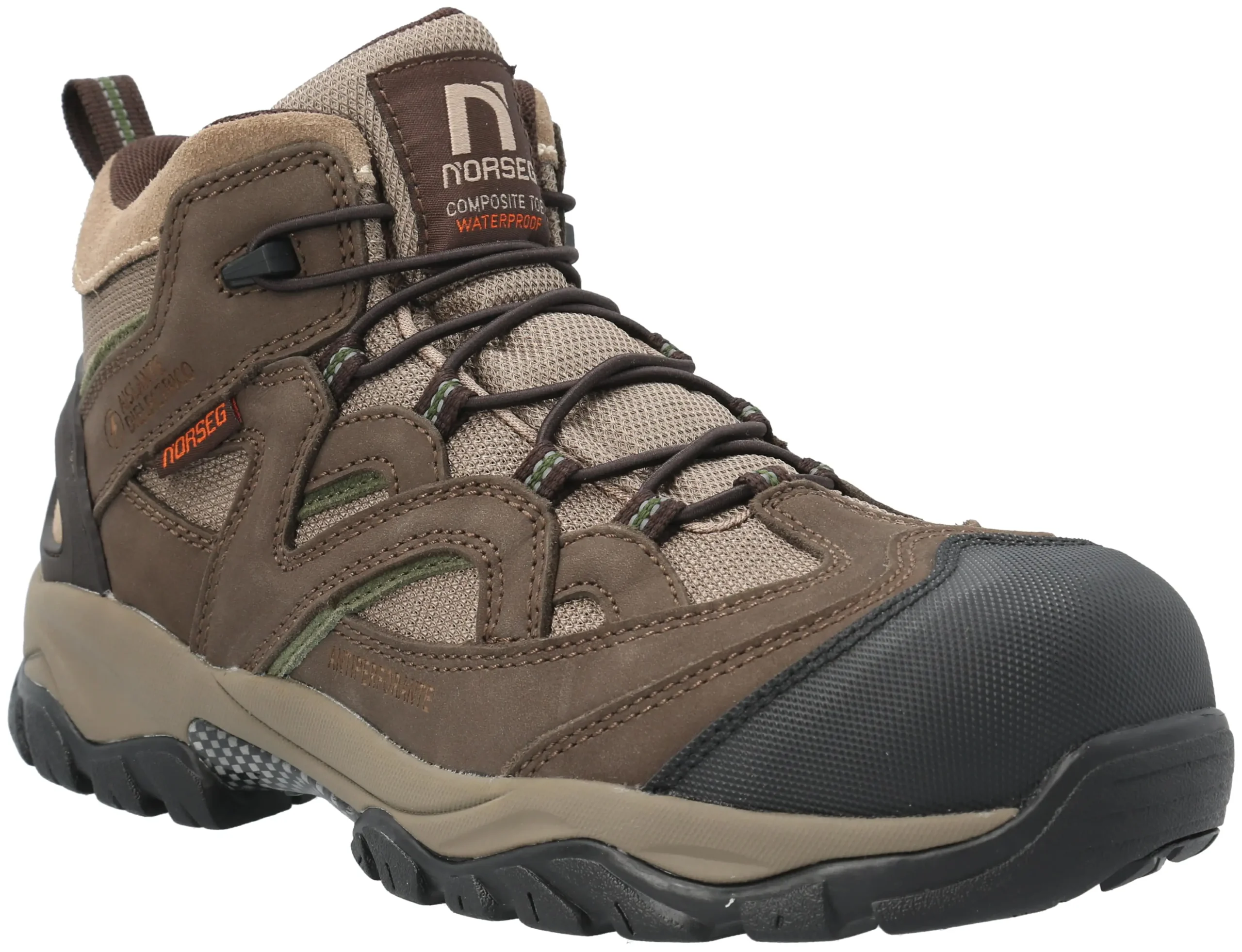 La construcción cementada del calzado de seguridad Ontario asegura firmeza y larga vida útil. La capellada mezcla cuero nobuck y textil en color taupe para mayor resistencia. El forro textil con membrana waterproof mantiene el pie seco. La lengüeta tipo fuelle, acolchada y forrada, mejora el ajuste.