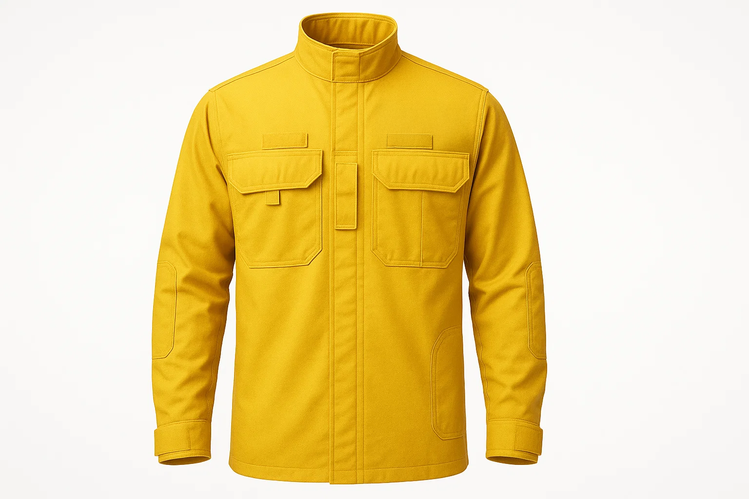 Abrigo de bombero de alta visibilidad resistente al fuego con forro térmico.