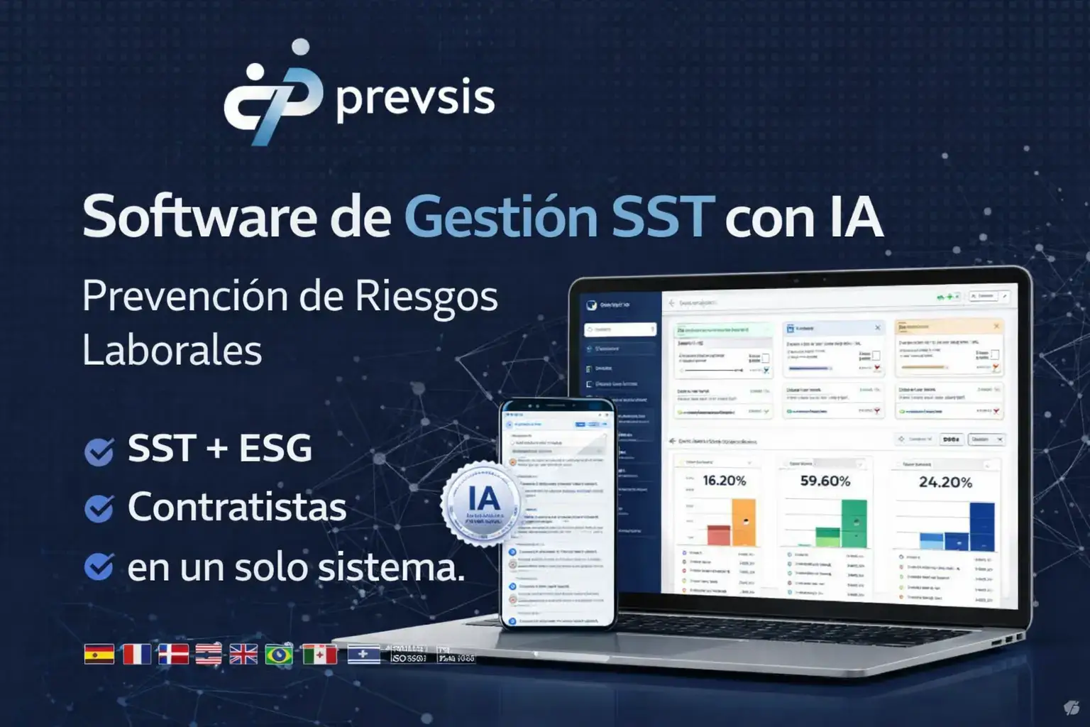 Prevsis es un software de gestión SST diseñado para digitalizar, automatizar y optimizar la Seguridad y Salud en el Trabajo, la sostenibilidad corporativa (ESG) y el control de contratistas en entornos industriales.
